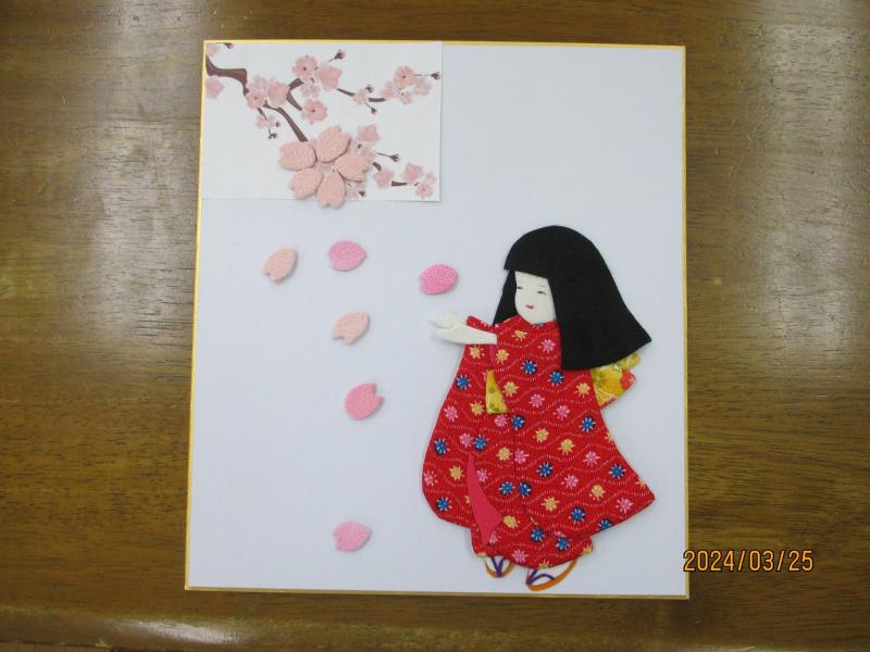 今月の作品は桜吹雪。 女の子の手の向き、花びらの位置等が、皆さんそれぞれ違い、個性的な作品が完成しました。(M)
